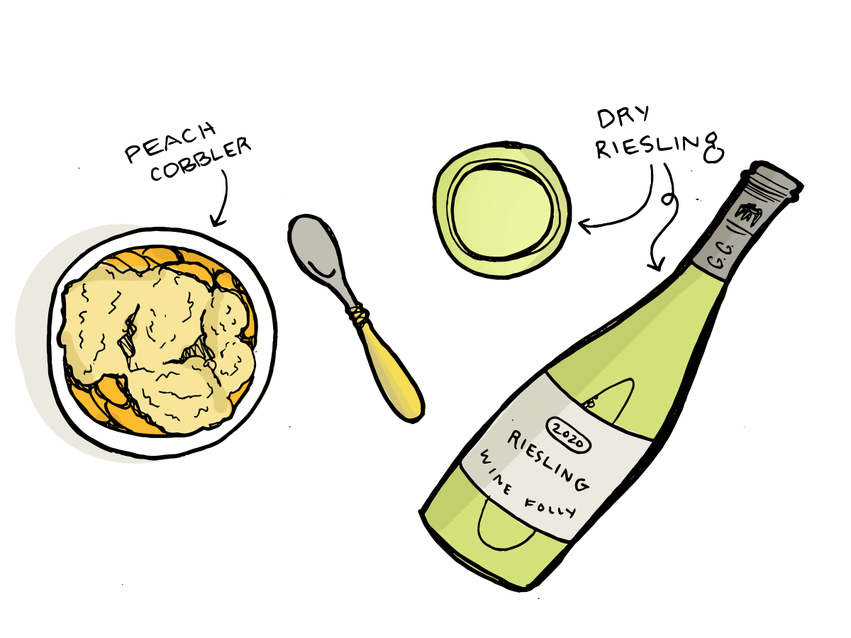 Why it works: With its bright acidity and fruit flavors, a dry Riesling cuts through the syrupy sweetness of a peach cobbler while only enhancing the dessert’s fruitiness.